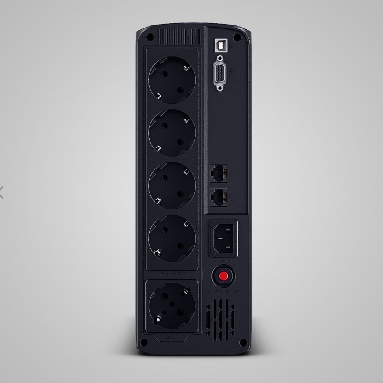 Sus 6 tomas Schuko protegidas por batería, junto con la regulación automática de voltaje (AVR – Boost & Buck), aseguran una alimentación continua y estable incluso cuando la red eléctrica presenta fluctuaciones o caídas.